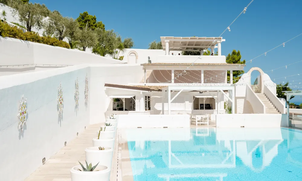 Sì, disponiamo di un elegante terrazza con piscina, con affaccio a picco sul golfo del Gargano, ideale per aperitivi, cerimonie civili, taglio torta e shooting fotografici.